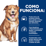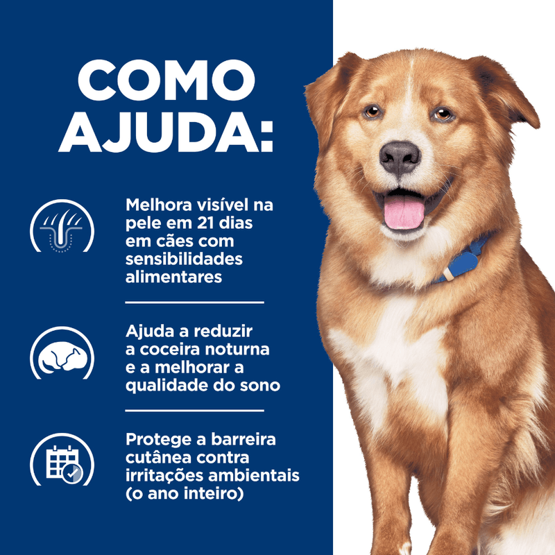 - Melhoria visível da pele em 21 dias em cães com sensibilidade alimentar;