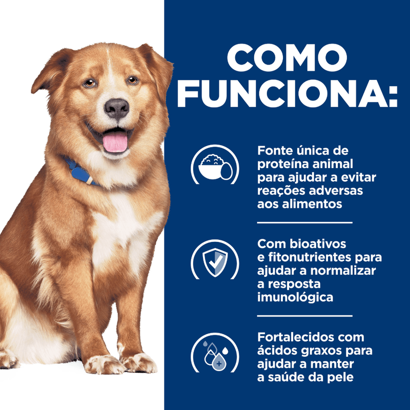 - Fonte única de proteína animal para ajudar a evitar reações adversas aos alimentos.